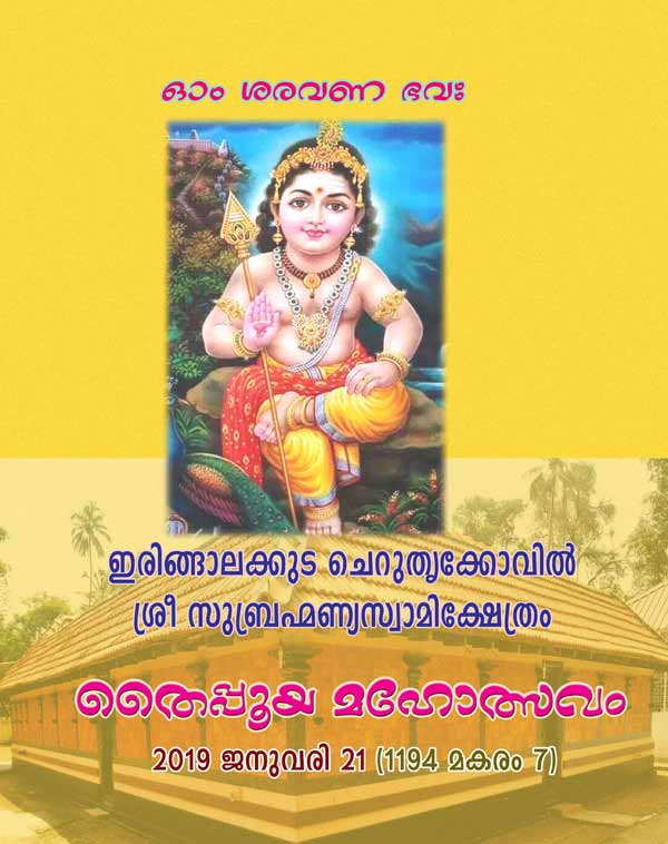 Cheruthrukku Temple popularly known as Cherumukku temple is dedicated to Lord Muruka in the form of a child. Lord Muruka is the pet son of Lord Siva and Goddess Parvathy. Lord Muruka’s Incarnation was to protect the world from the evils of Demon Taraka. As a child Muruka had the knowledge of Lord Dakshinamurthy and strength of Goddess Parvathy. Lord Brahma became a victim of his knowledge as when Muruka asked the meaning of Pranava Manthra and Brahma could not answer properly. |